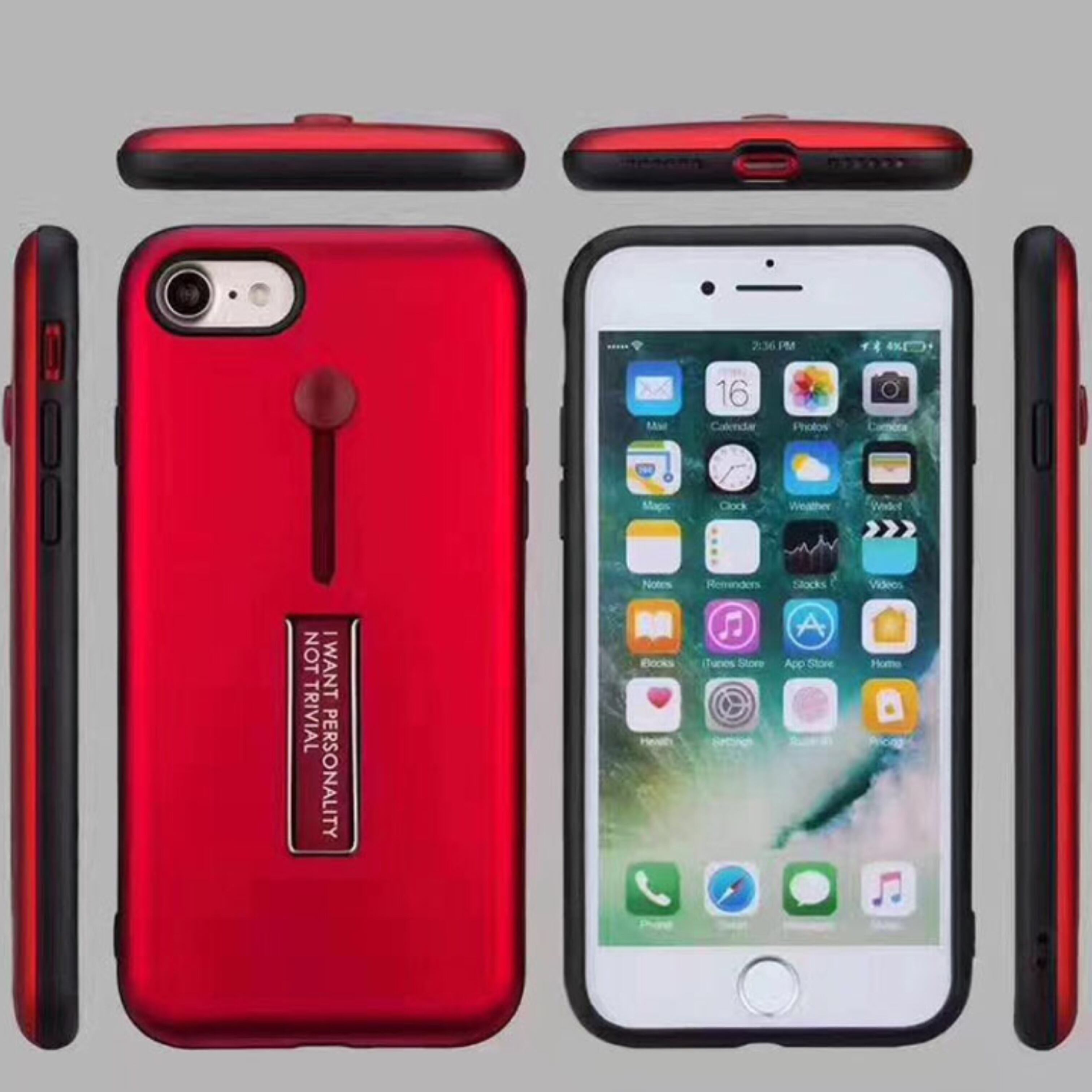 [v14] フィンガーリング付き シンプル Red / Black iPhoneケース ※新機種対応