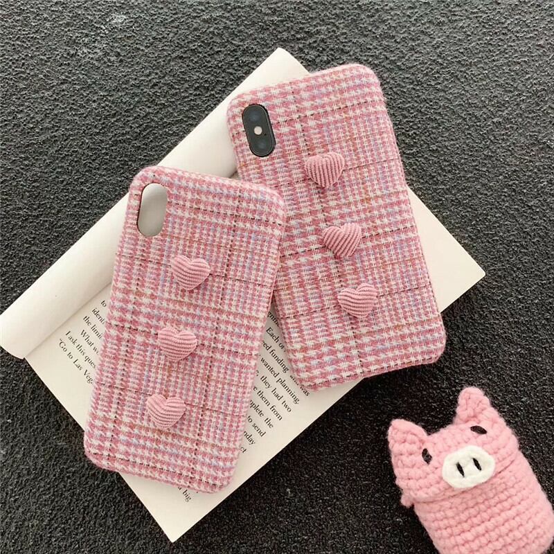 [bk08] ハート Pink 3つ iPhoneケース チェック柄 ※新機種対応