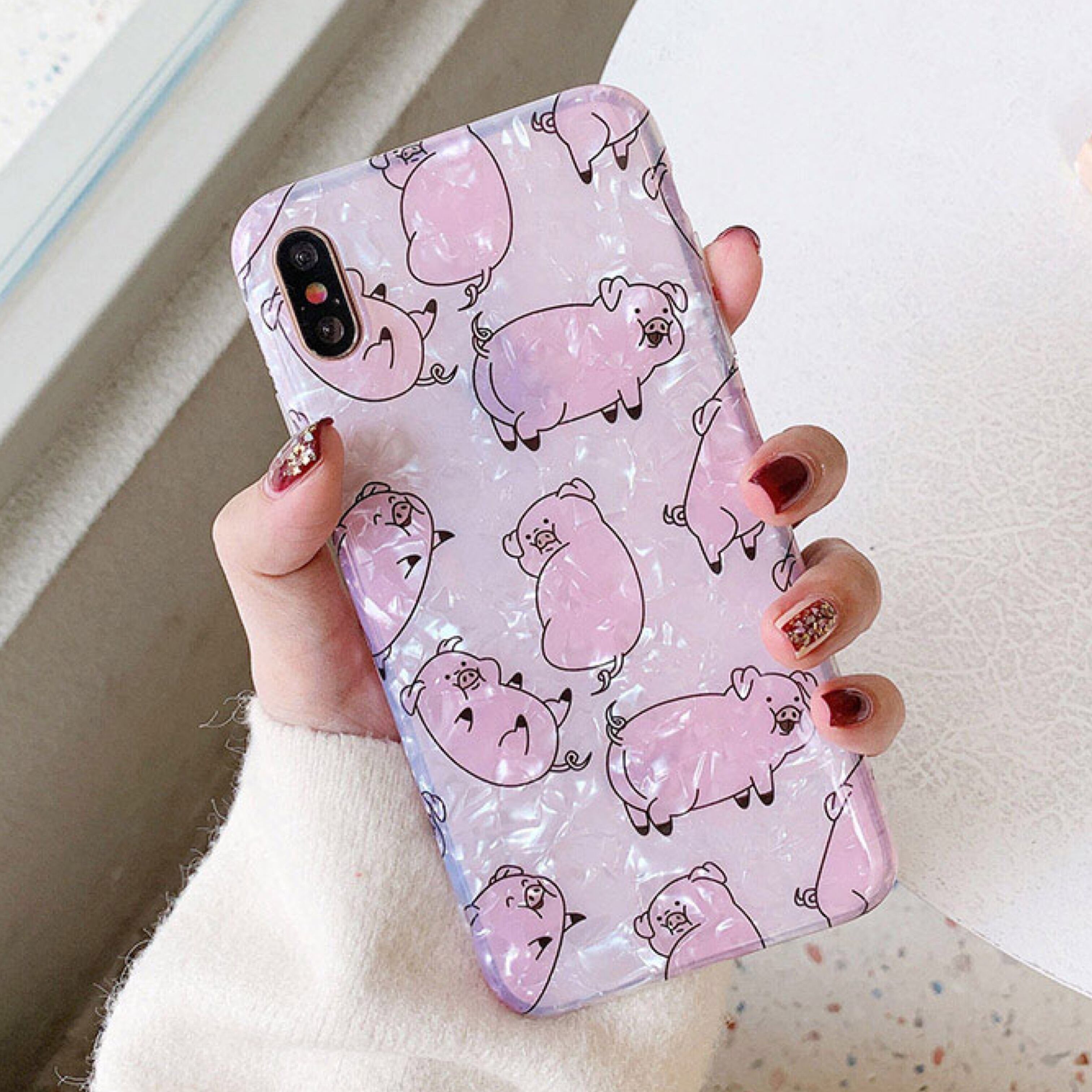 [bz24] ブタさん iPhoneケース Pink シェル加工 TPU ※新機種対応