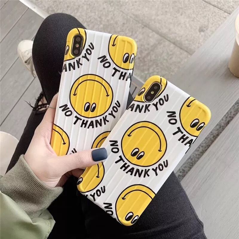 [bo28] "NO THANK YOU" iPhoneケース スマイリー White ※新機種対応