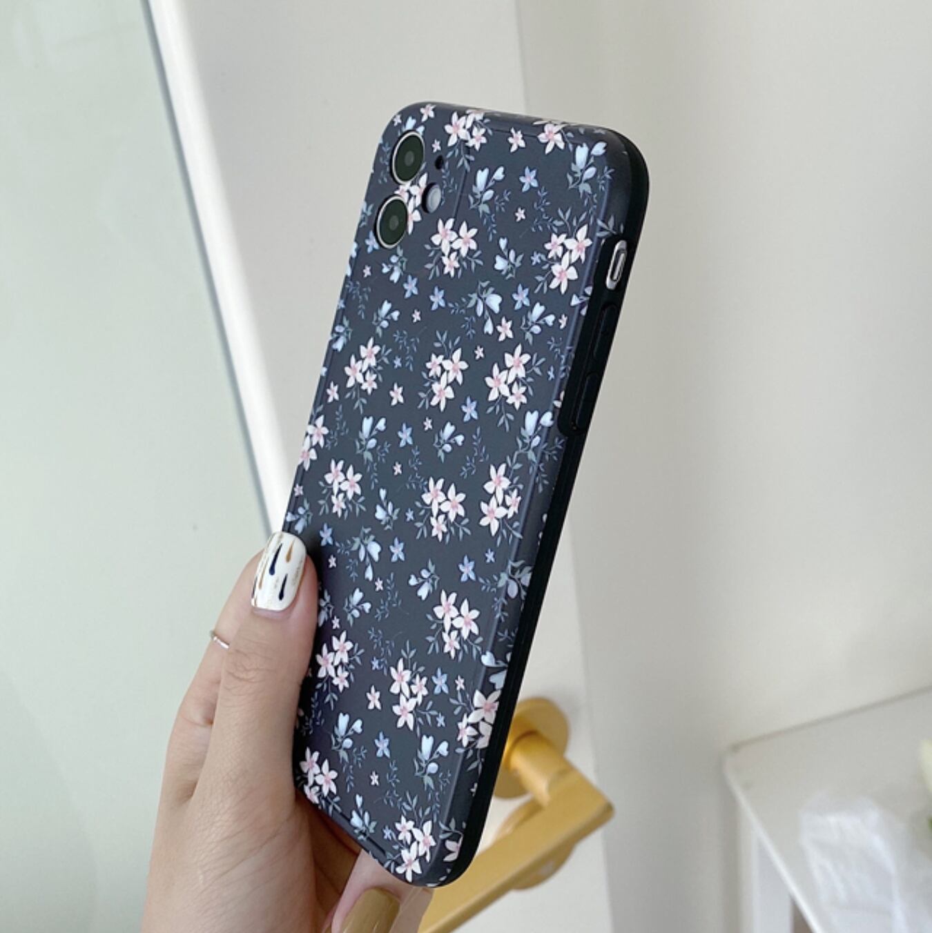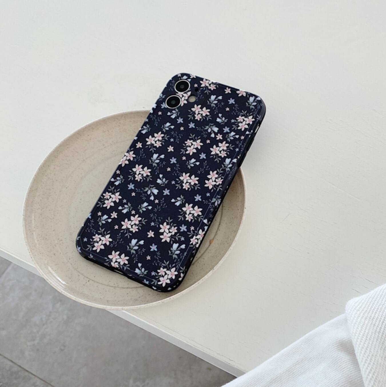 [ca166] iPhoneケース 小花柄 Black