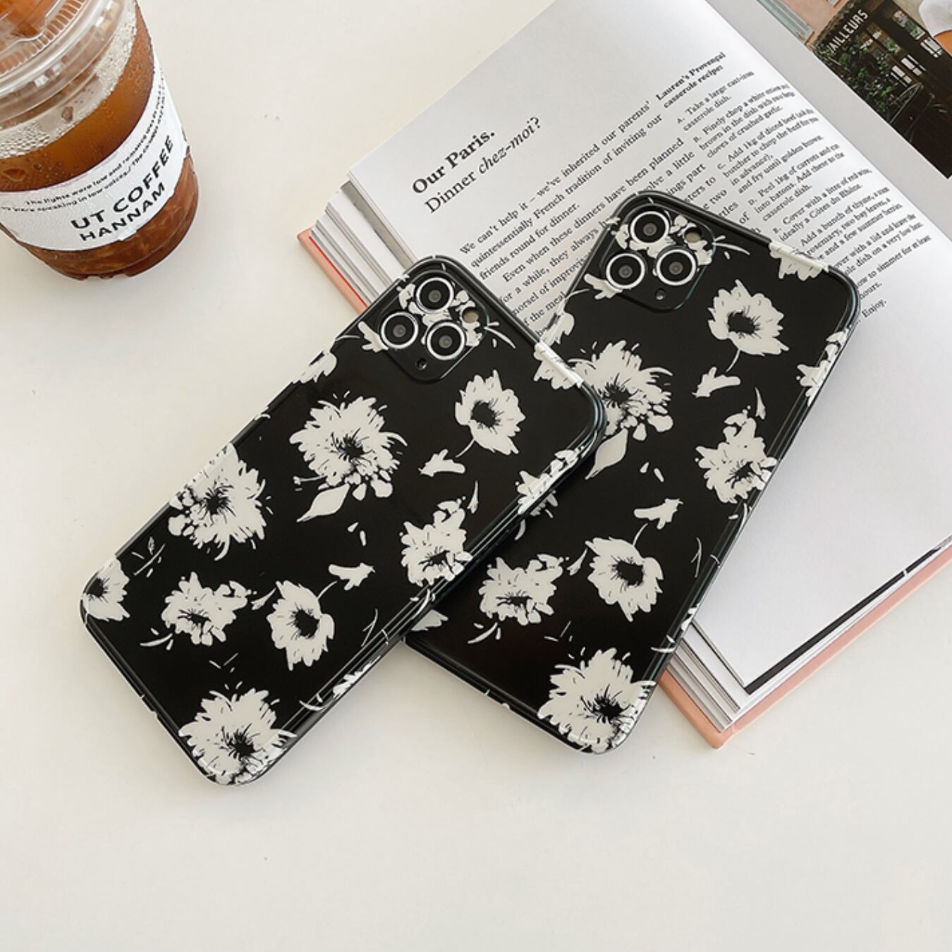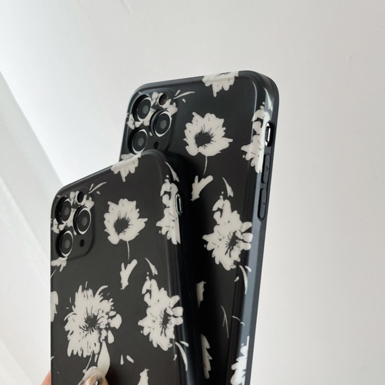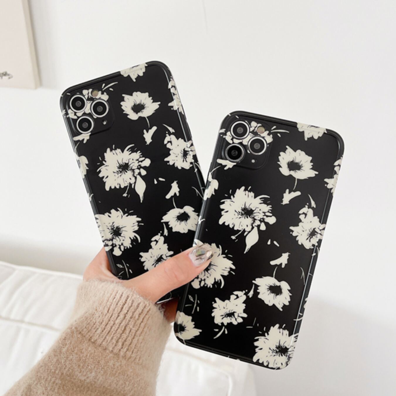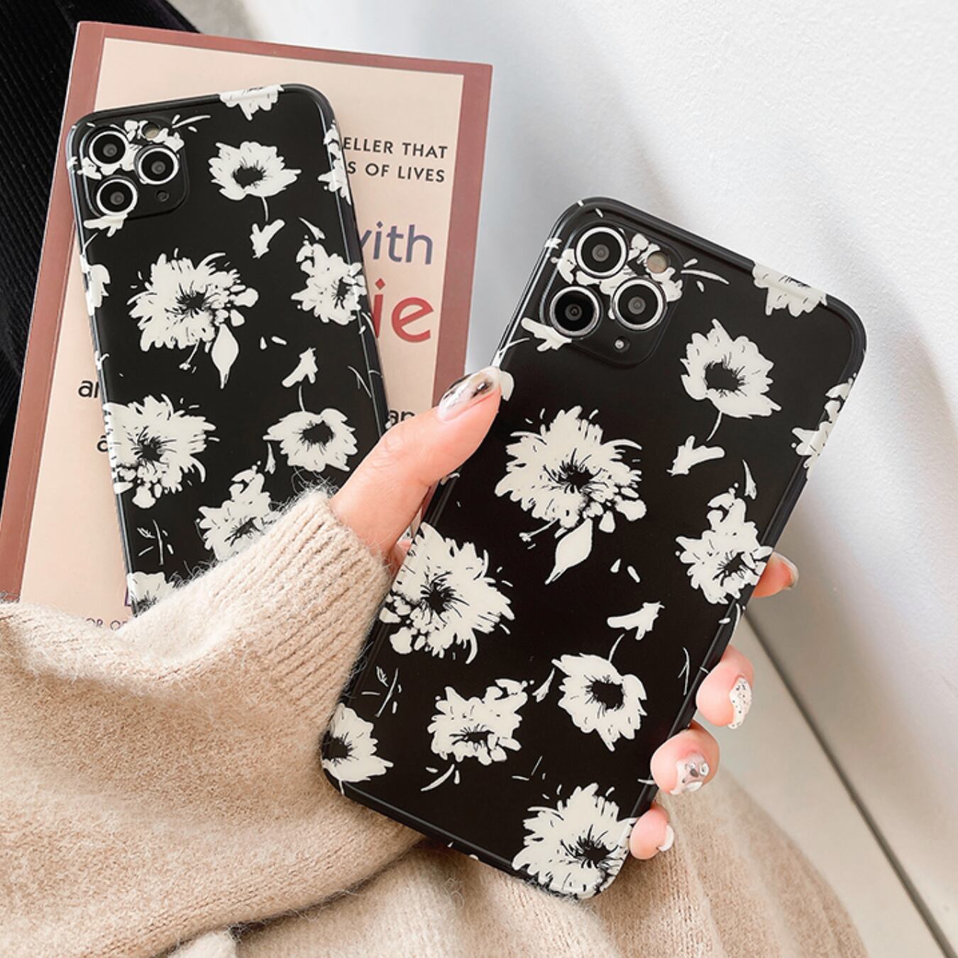 [ca278] iPhoneケース 花柄 Black