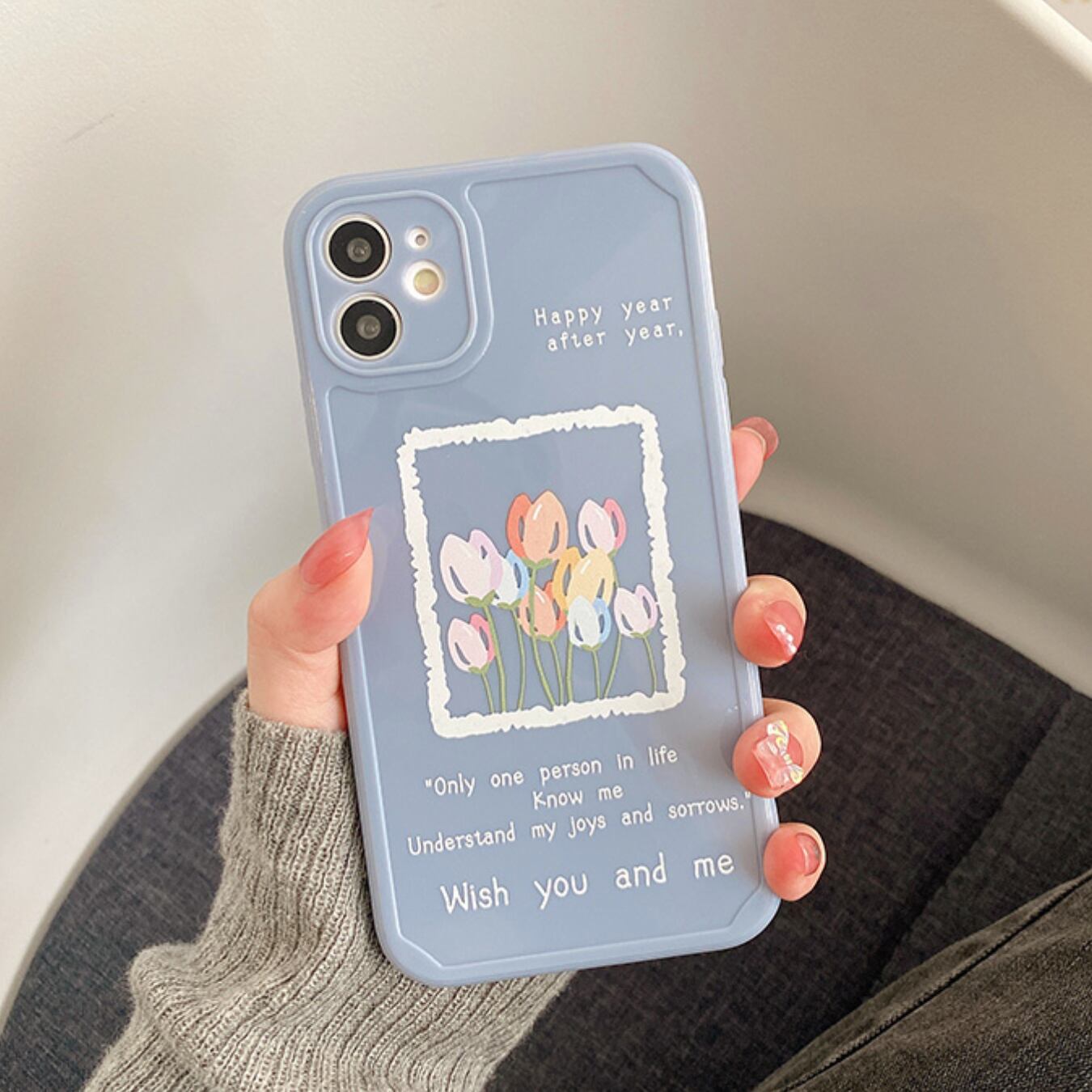 [ca289] iPhoneケース チューリップ Blue