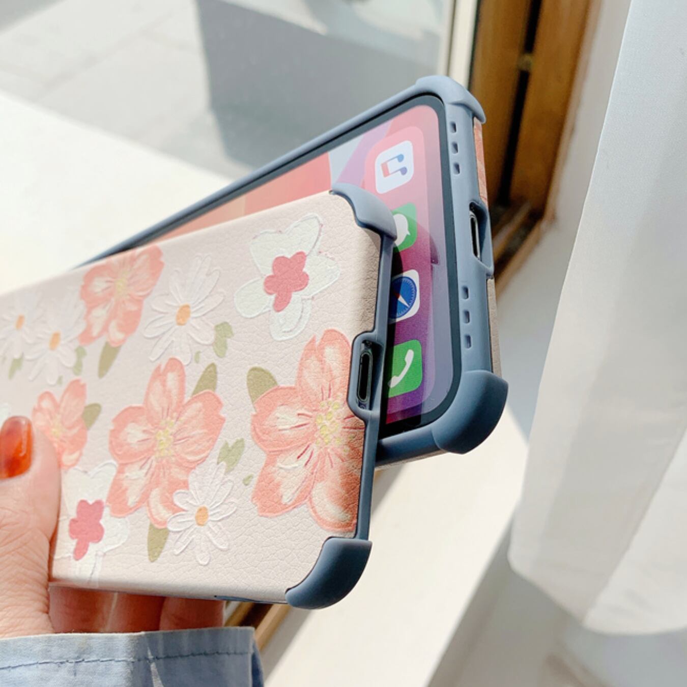 [ca304] iPhoneケース フラワー ピンク