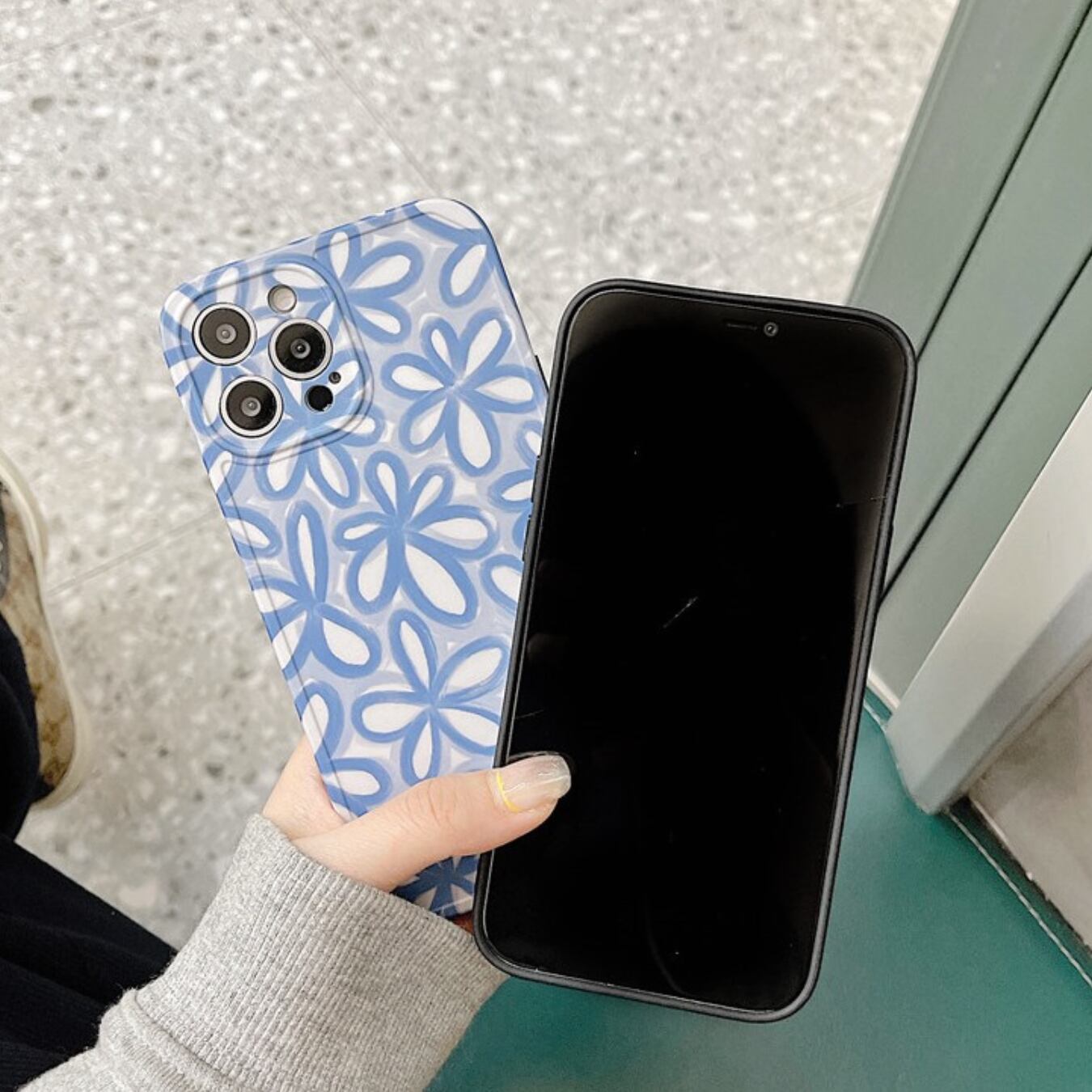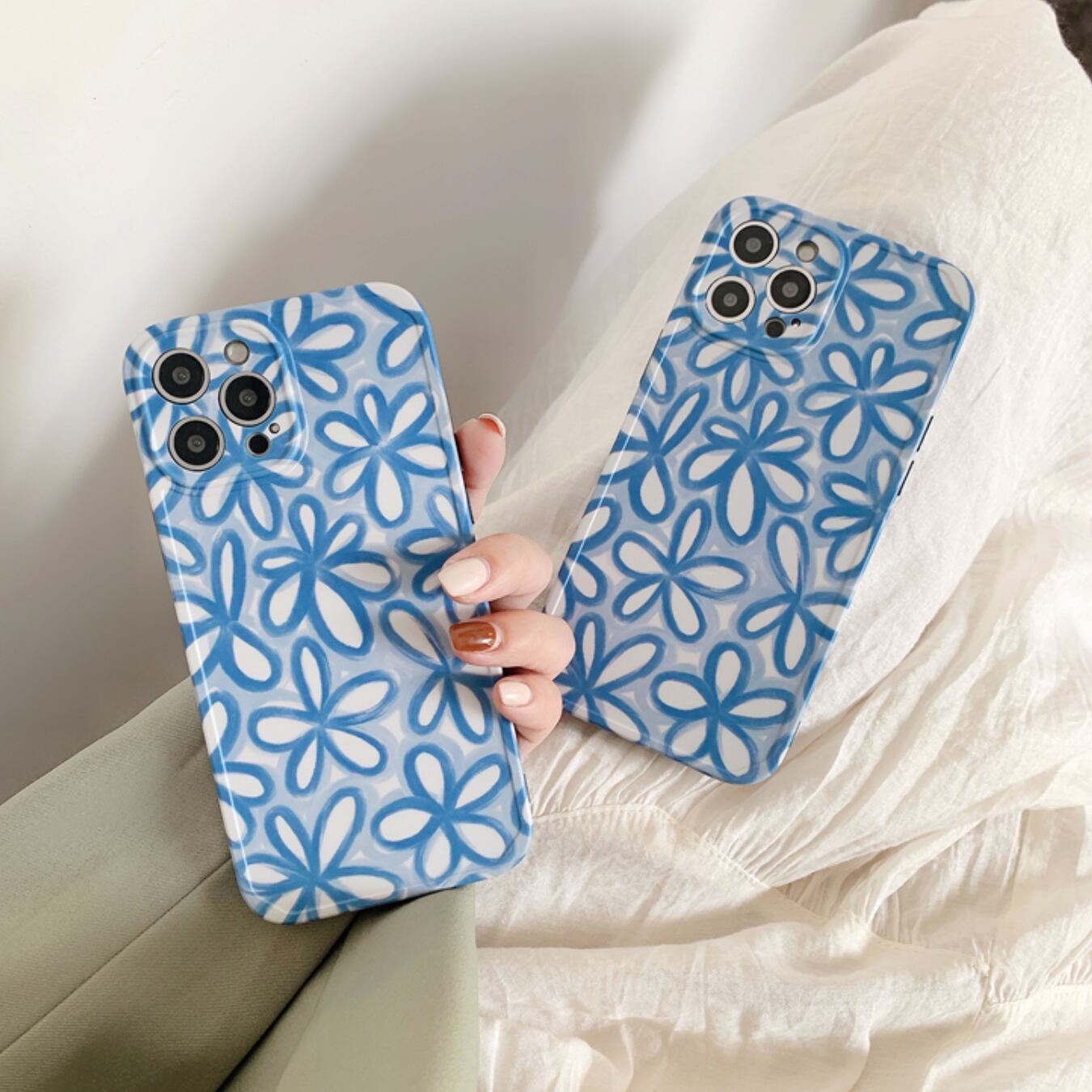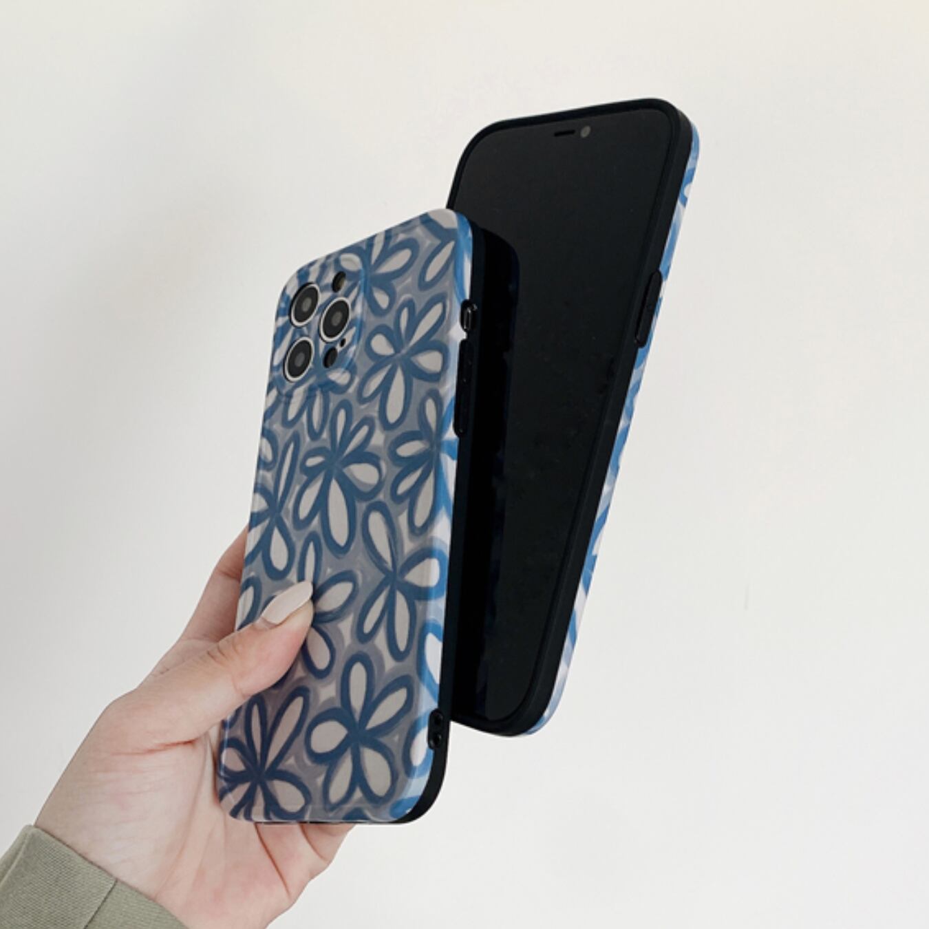 [ca411] iPhoneケース ブルーフラワー