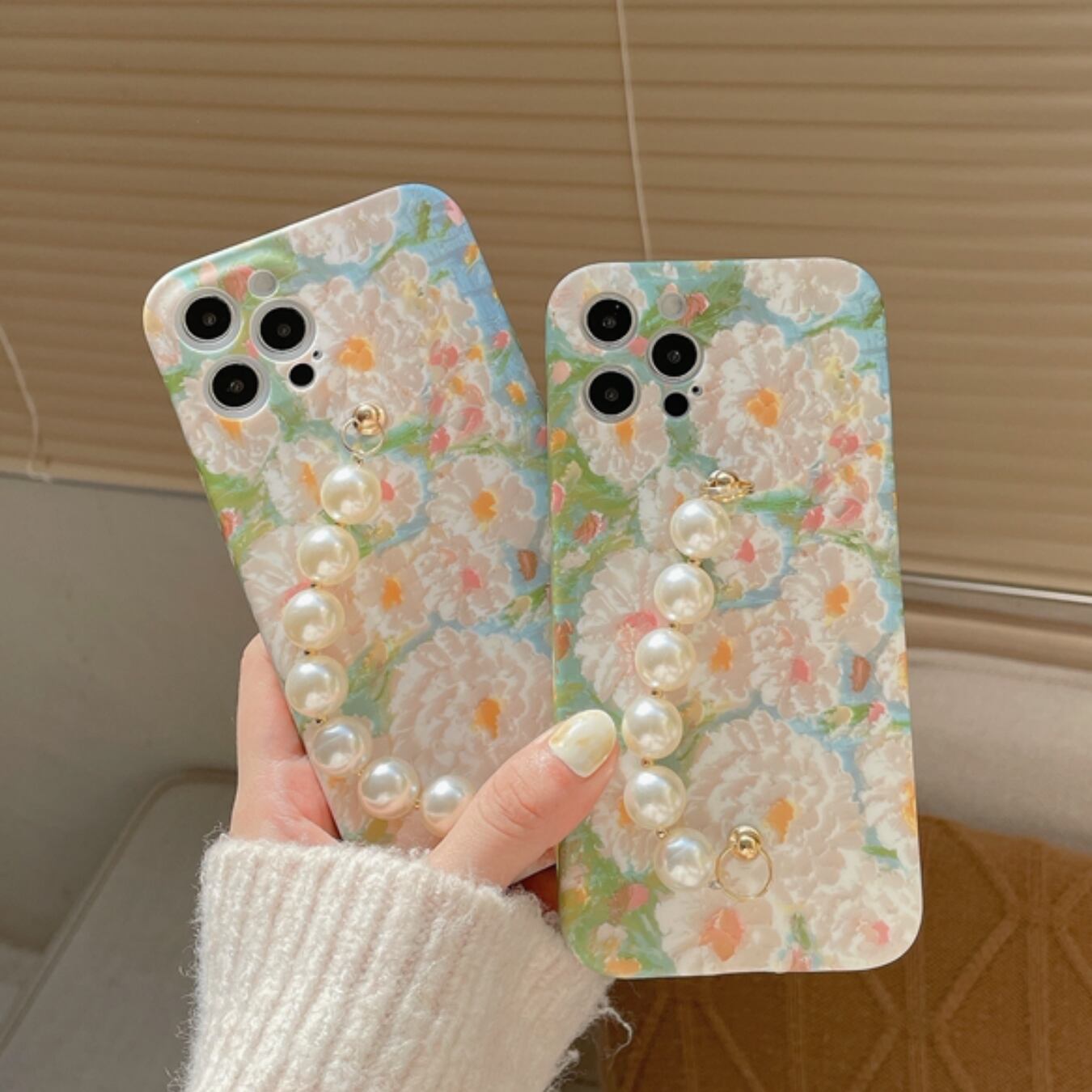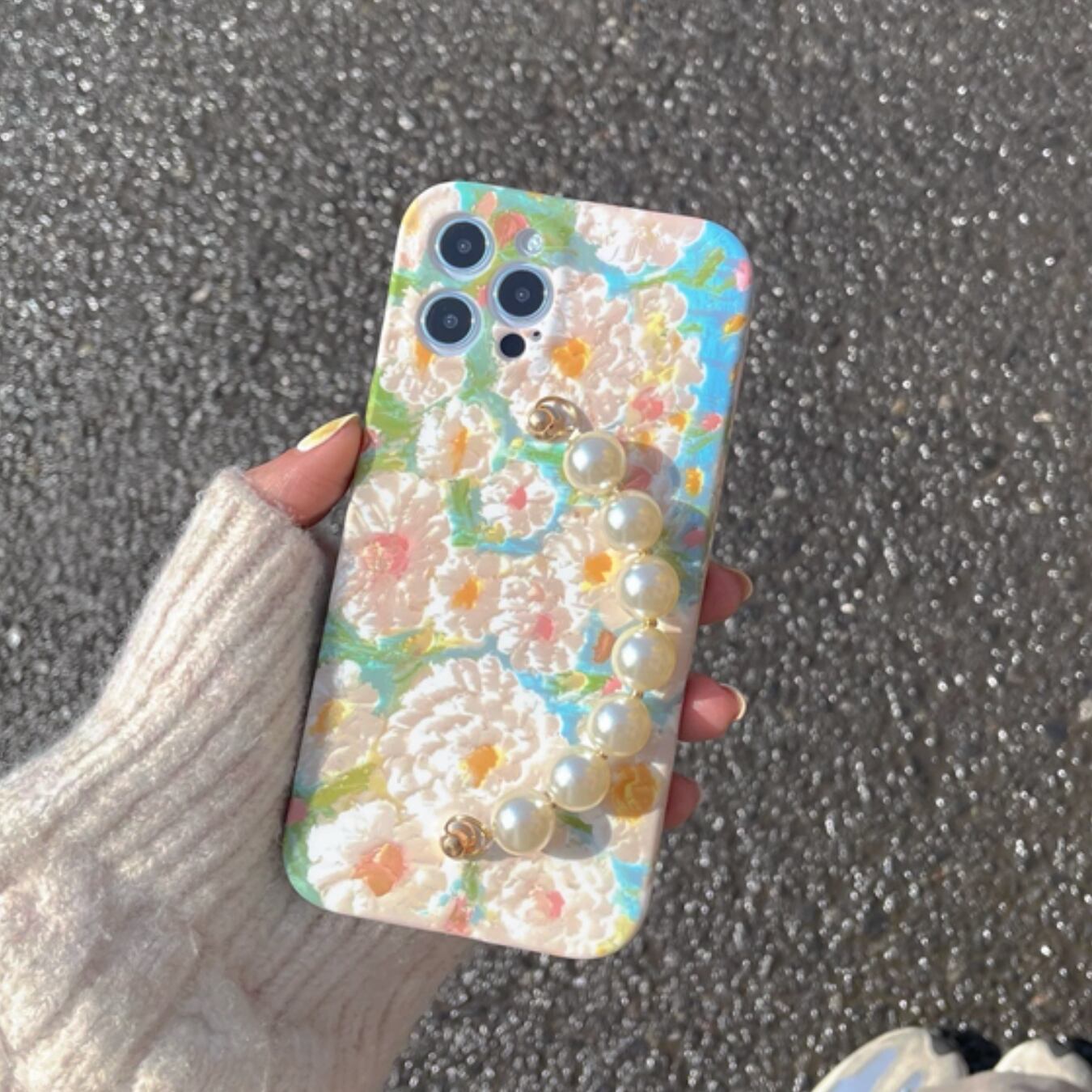 [ca518] パールチェーン Flower iPhoneケース