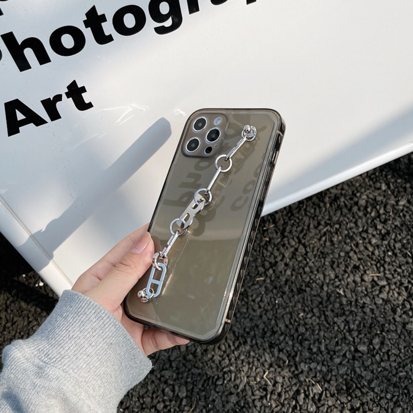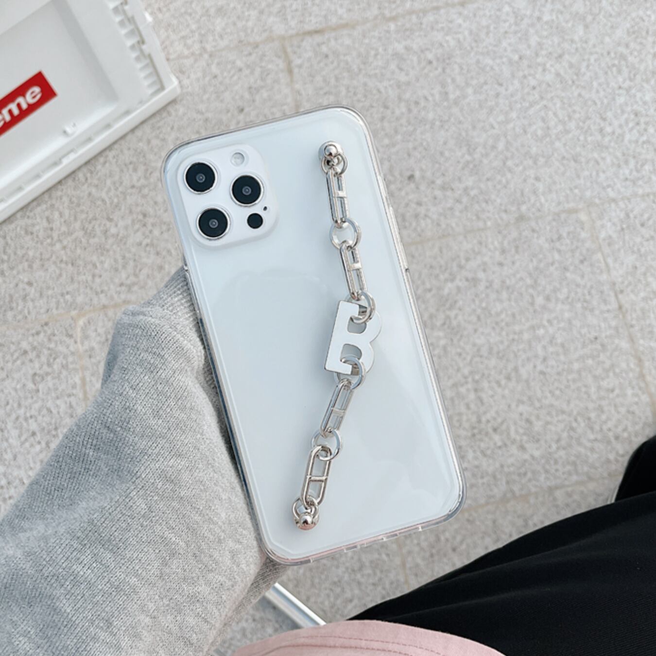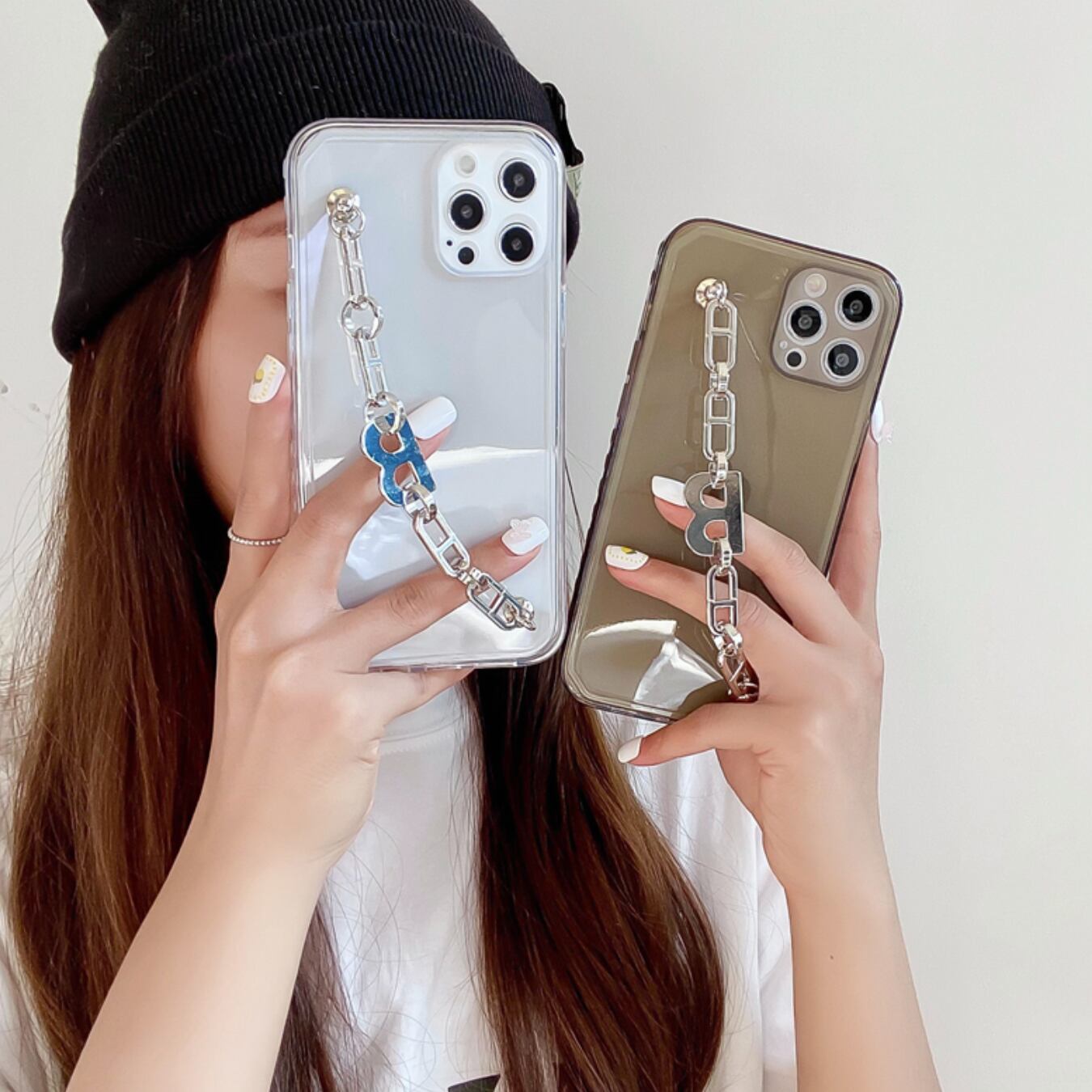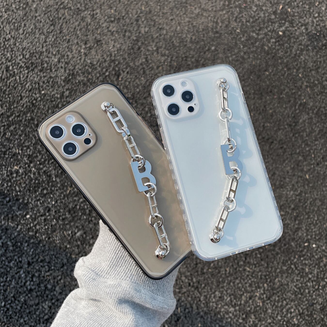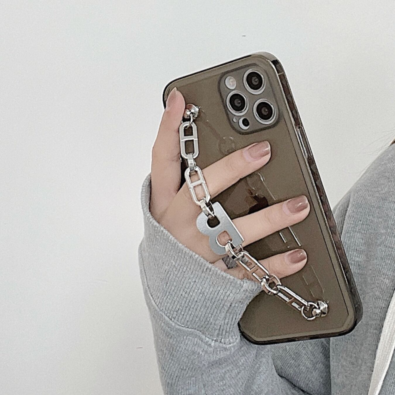 [ca533] "B" メタルチェーン iPhoneケース