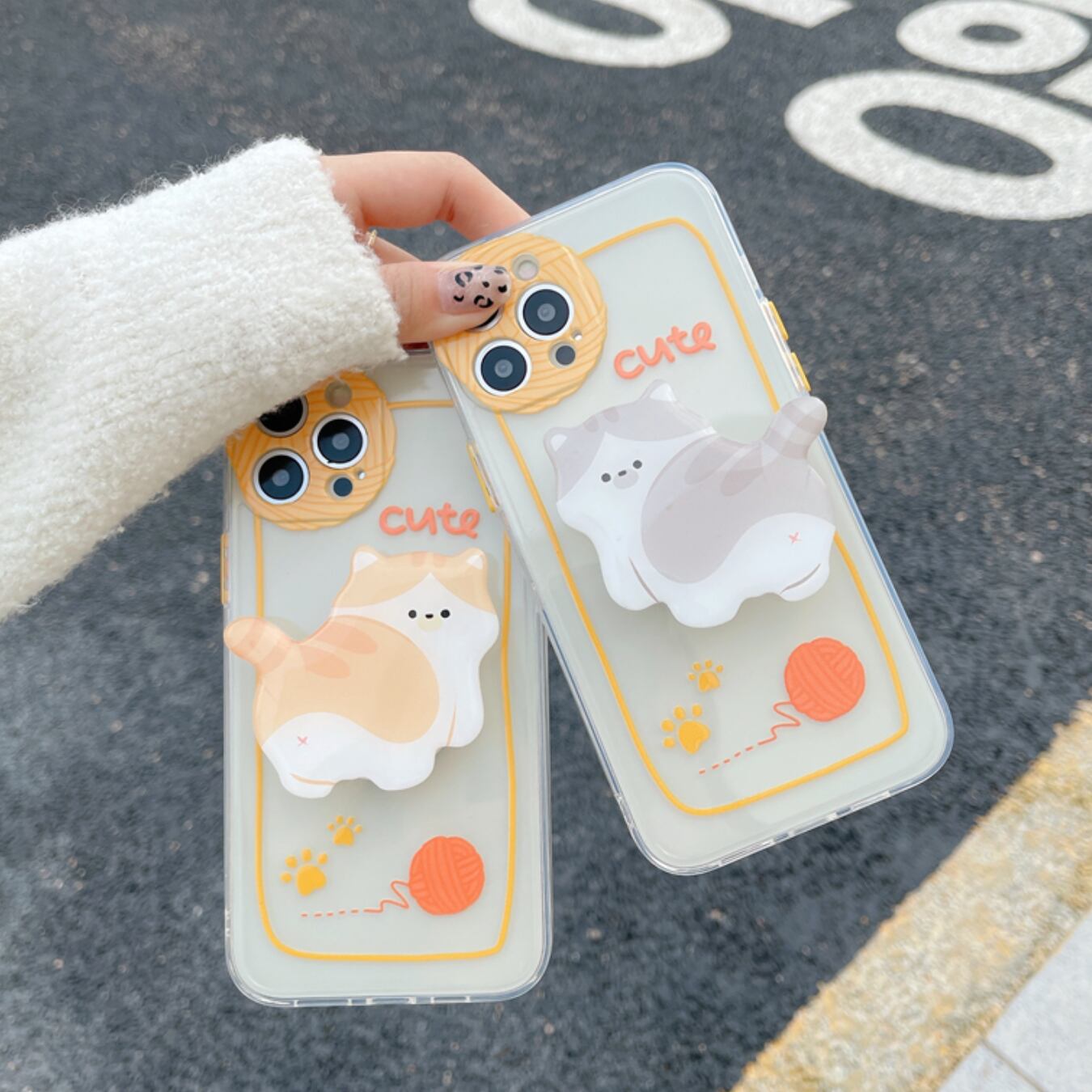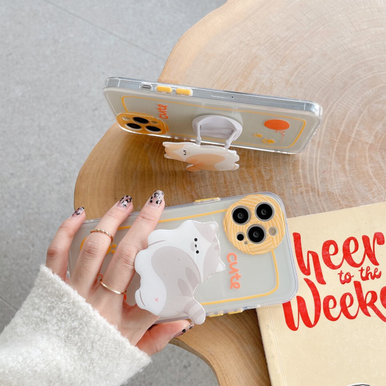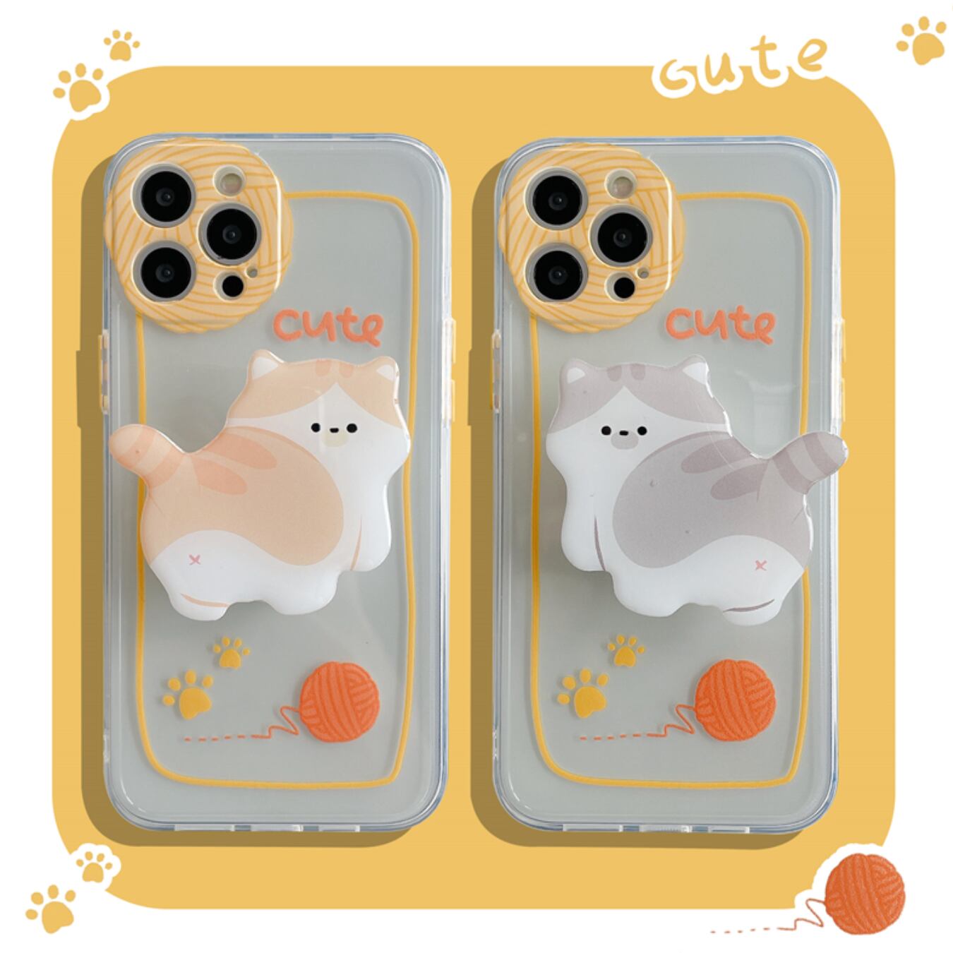 [ca543] "Cute Cat" ホルダー付き iPhoneケース