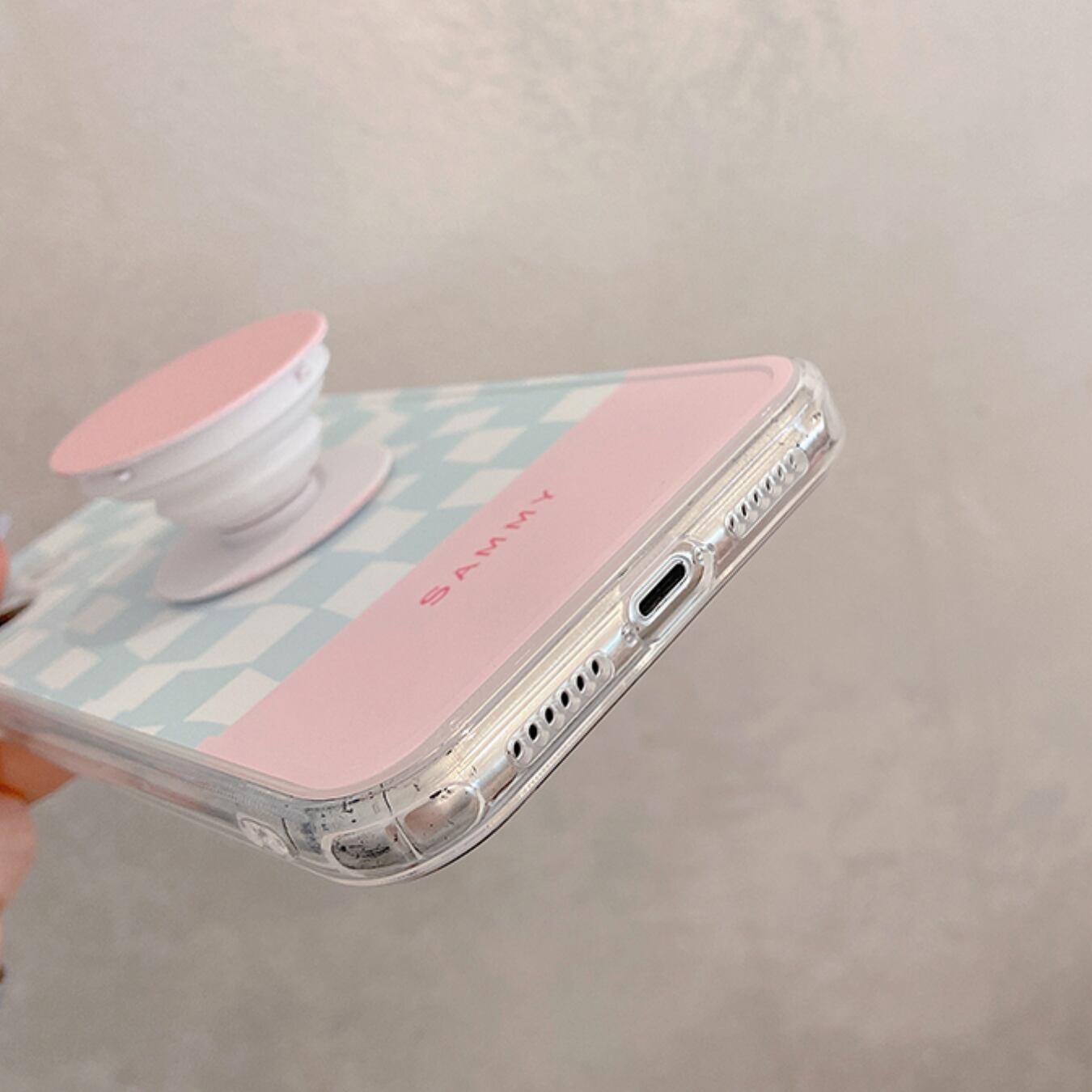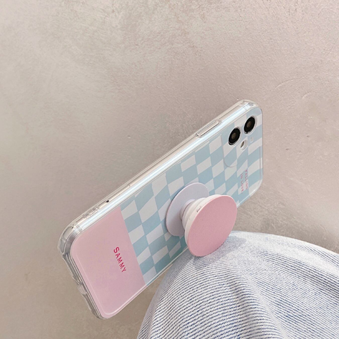 [ca555] 水色チェック ホルダー付き iPhoneケース