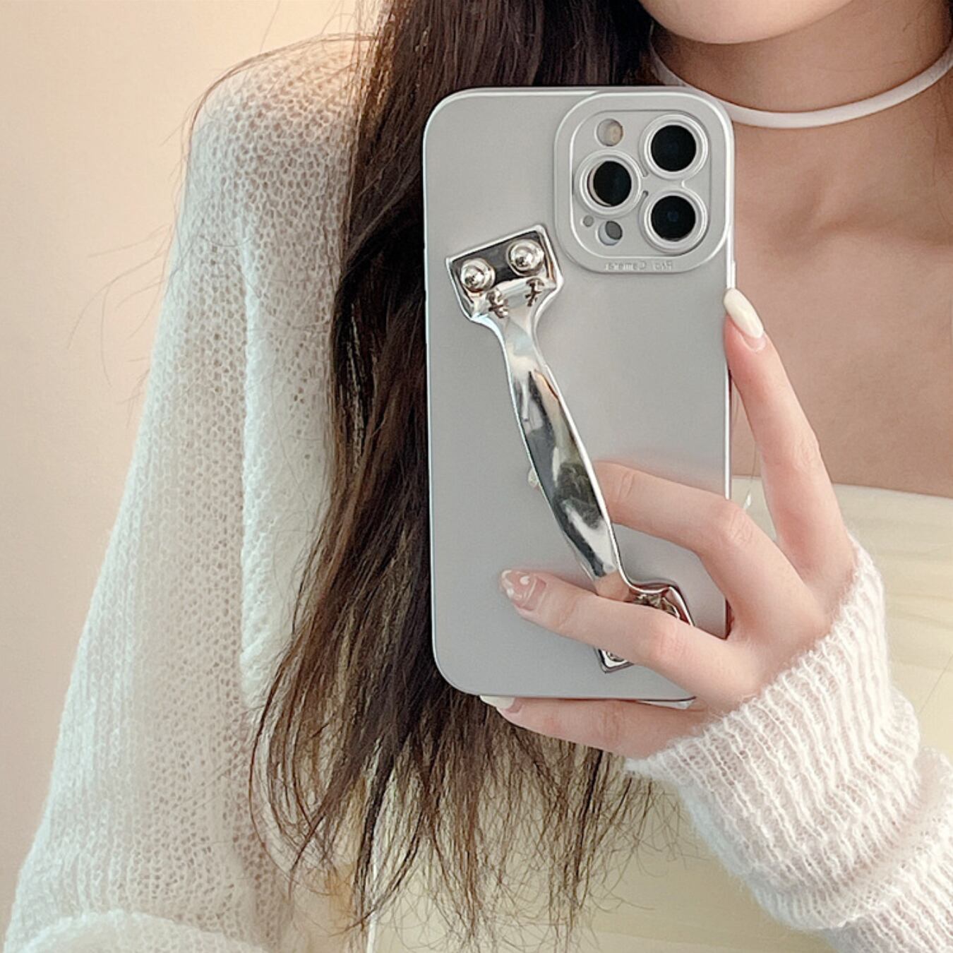 [ca910] ハンドル シルバー iPhoneケース